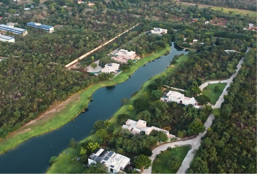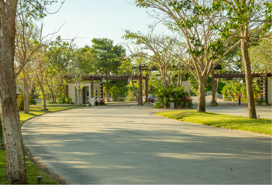 Un recorrido que conecta con el entorno a través de árboles regionales como maculis y álamos yucatecos. Cada paso te envuelve en vegetación local y calma diaria.