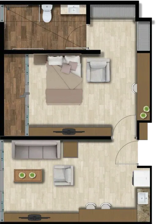 Suites de lujo de 70 metros cuadrados. Área Interior 66 m² y Área Terraza 4.37 m²